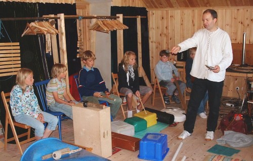 Fredagen var i hovedsak viet musikkverkstedet til Jon Halvor Bjørnseth fra Drivhuset. Han kom med en varebil full av instrumenter og andre objekter som kunne brukes til å frembringe ulike lyder. I løpet av dagen hjalp han oss til å sette sammen et verk som vi fremførte for foreldrene på søndagen. Med stor iver og kompetanse klarte han å gjøre gruppen om til et samspilt (om ikke alltid like velklingende) orkester.