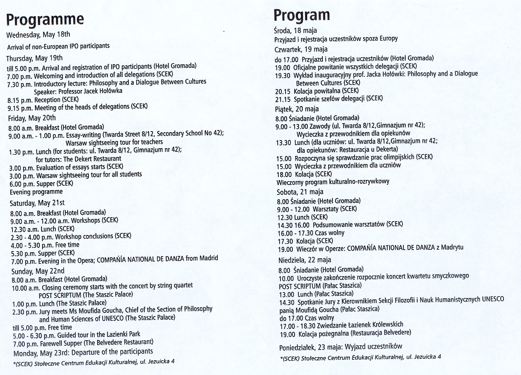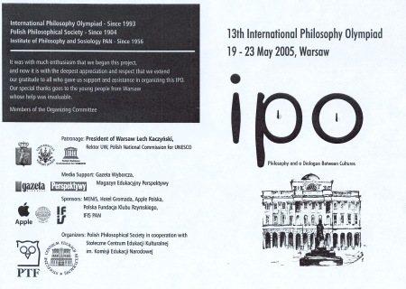Den 13. internasjonale filosofiolympiade, Warszawa, Polen – 19.-23. mai 2005