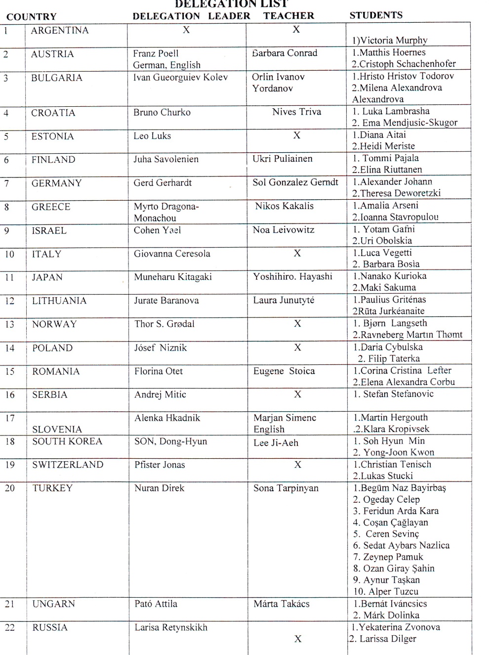 Årets norske deltakere var Martin Thømt Ravneberg og Bjørn Langseth, begge fra Foss videregående skole i Oslo. Delegasjonsleder var iår som tidligere Thor Steinar Grødal, lærer ved samme skole. På denne siden har vi kun samlet relevante dokumenter og bilder vi har mottatt fra Grødal. Altså ingen reisedagbok denne gang.