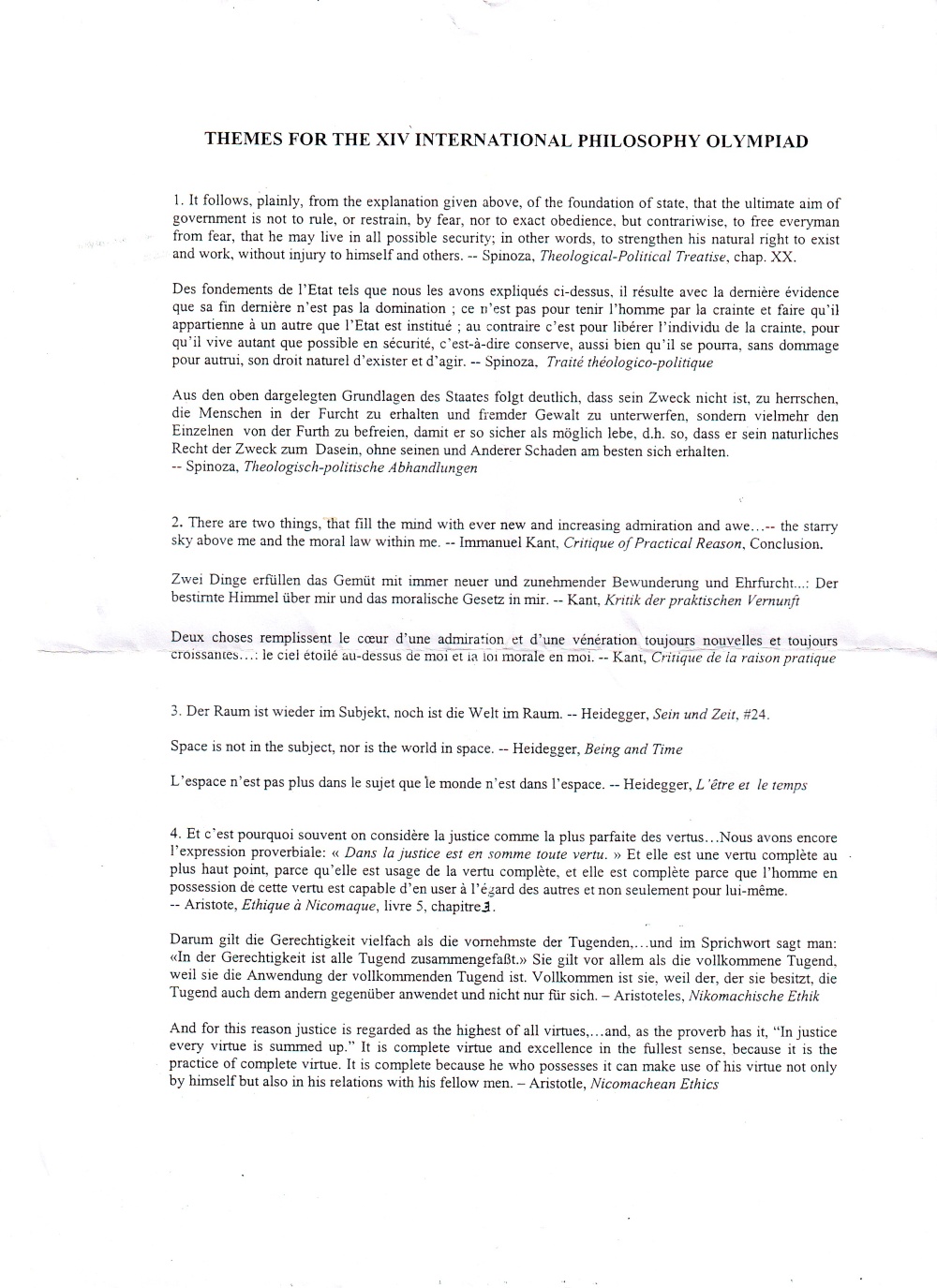 En filosofiolympiade er et ukelangt sosialt og kulturelt arrangement for gymnaselever fra hele verden. Arrangementet innledes med en skrivekonkurranse, men dreier seg vel så mye om å bli kjent med vertslandets kultur og historie – og, selvsagt, med likesinnede jevnaldrende. Årets olympiade var i Tyrkia – 18.-21. mai 2007 – og det var vertslandet som stakk av med gullmedaljen, med et essay med tittelen «Freedom, Security and Multiculturalism in Modern Societies». Ca. 50 ungdommer fra 22 land deltok.