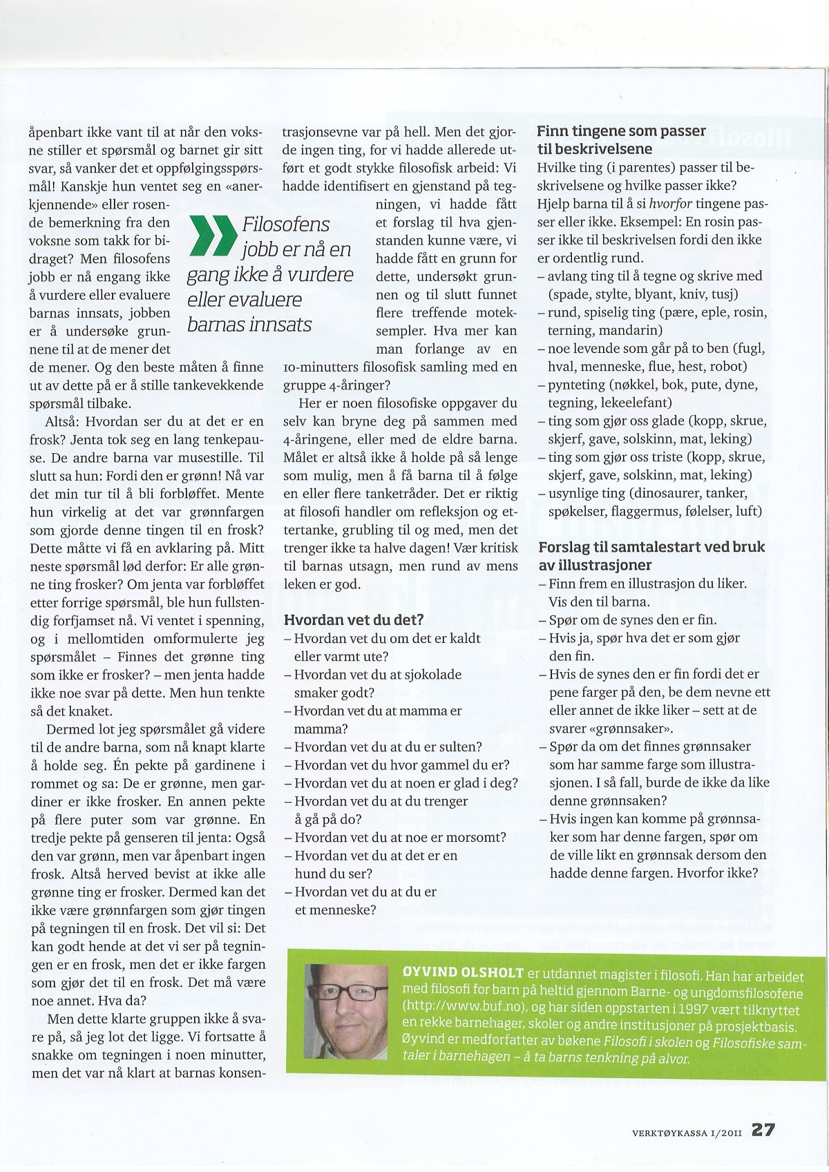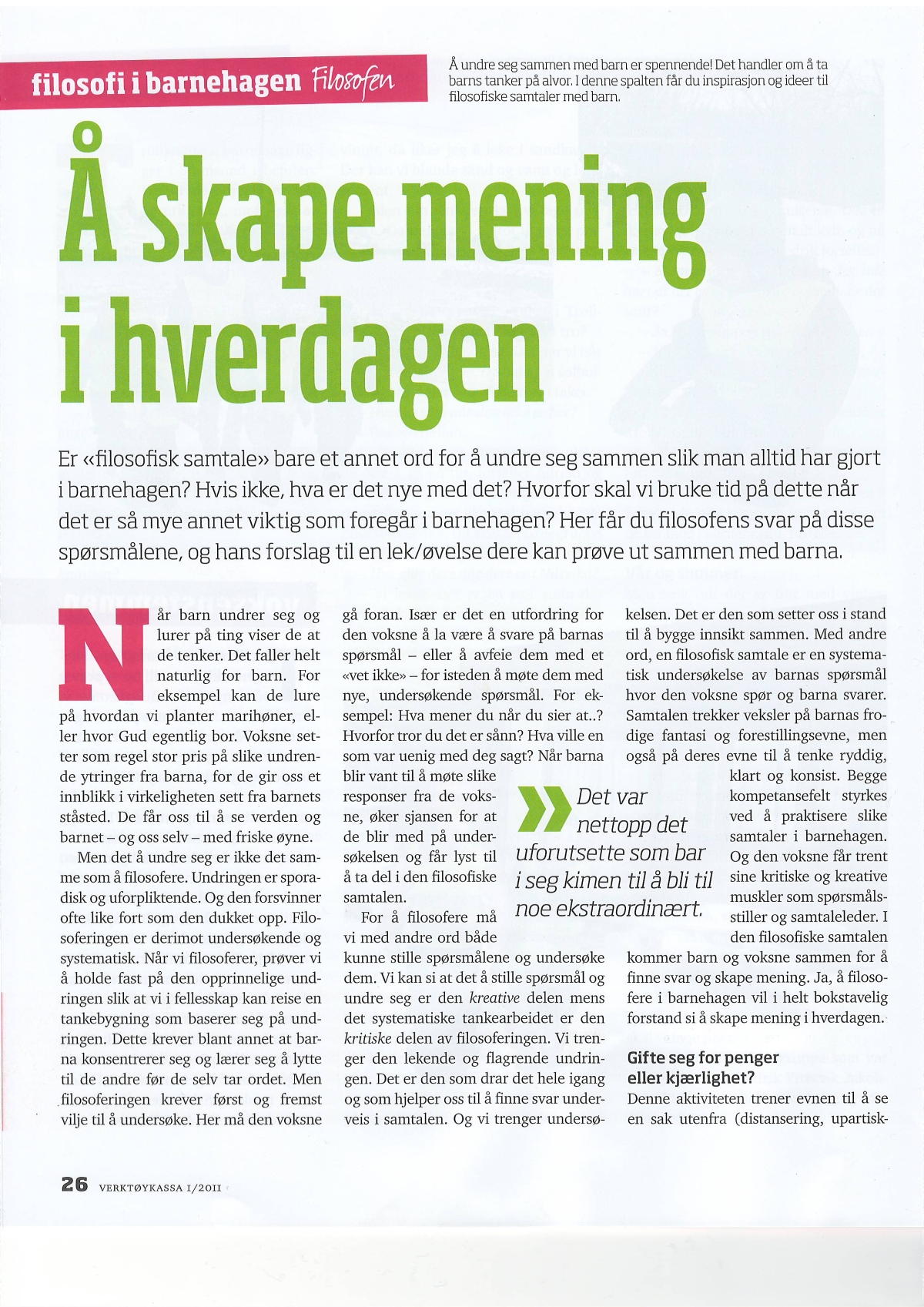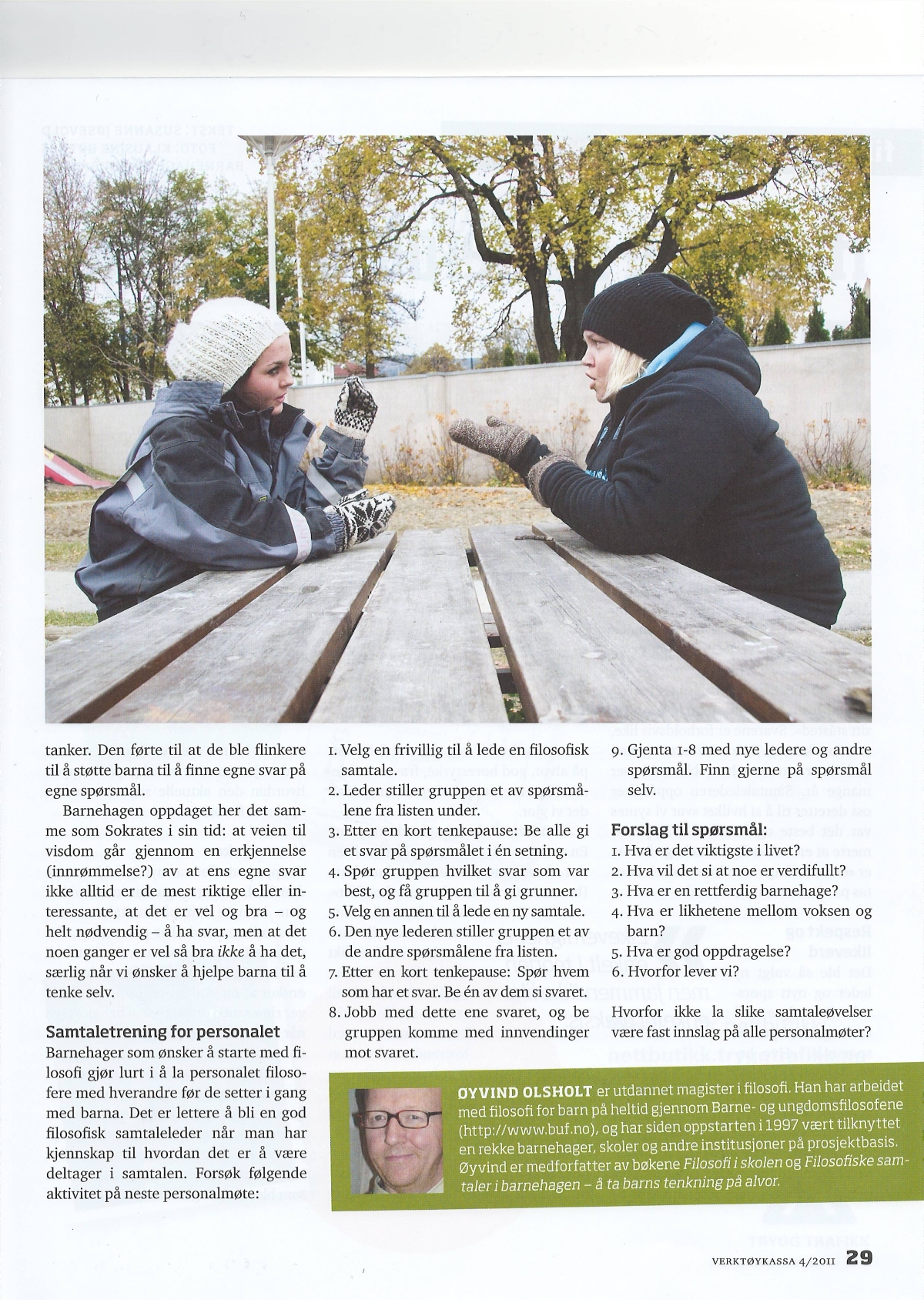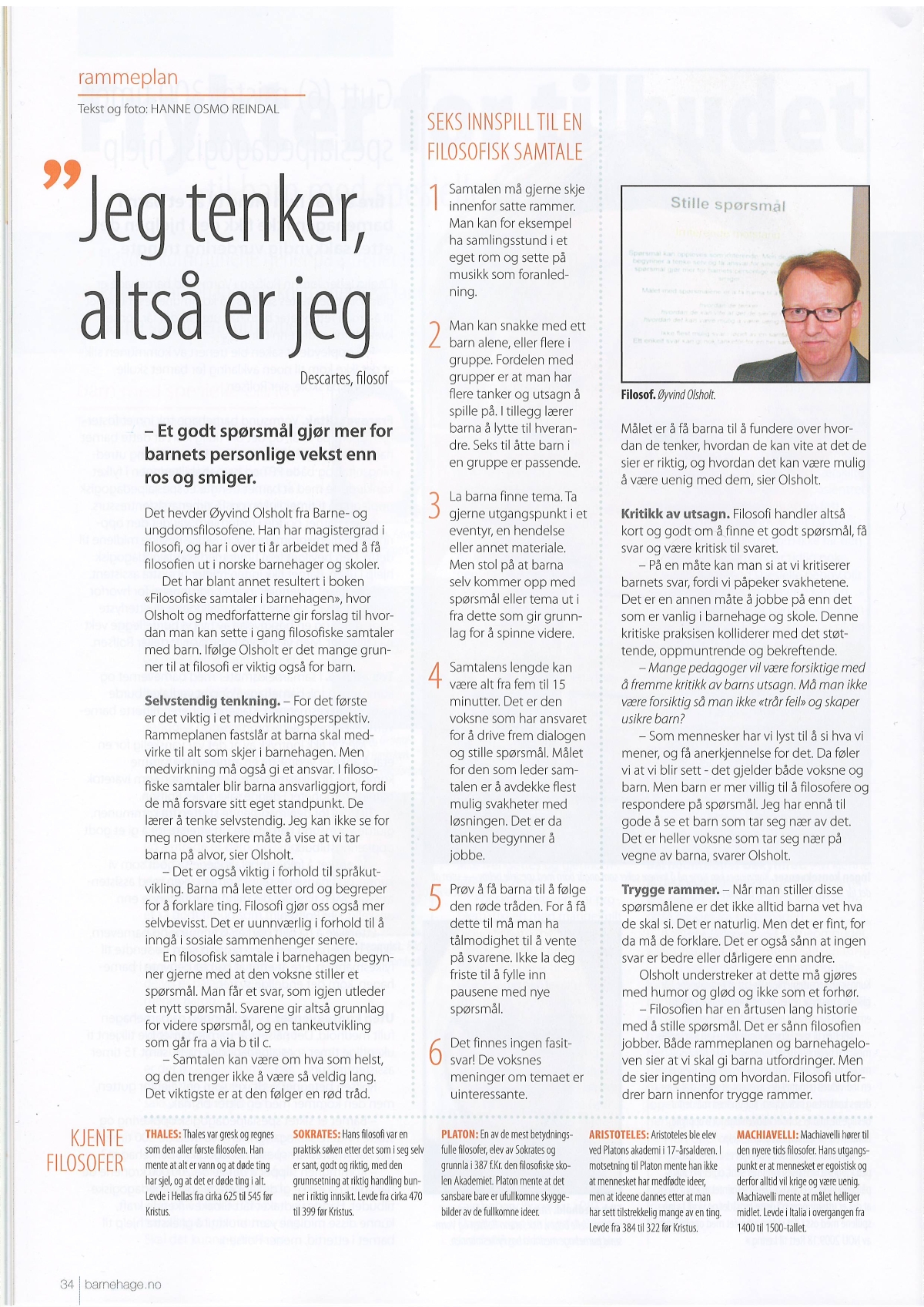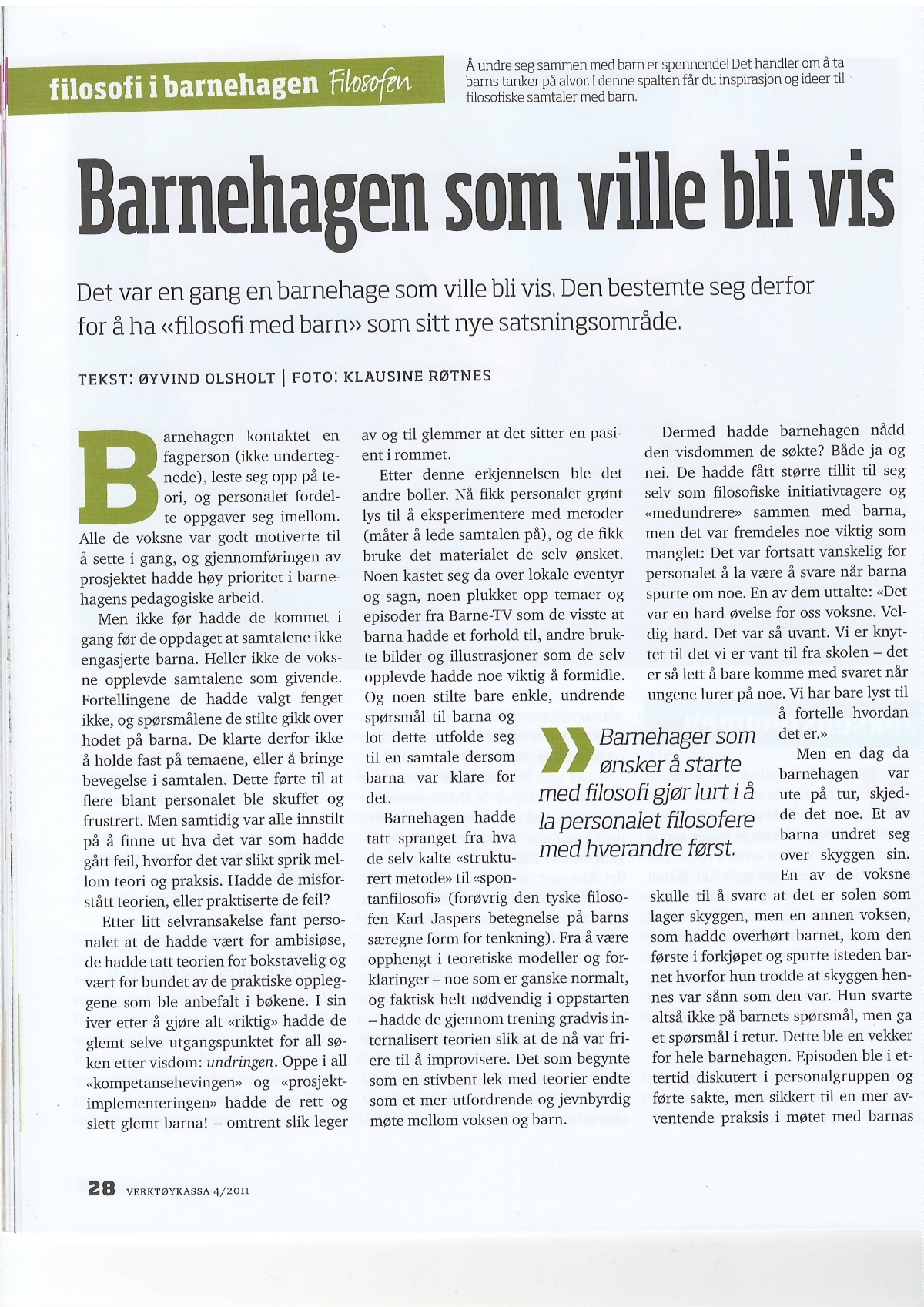 De siste årene har BUF skrevet og vært omtalt i ulike barnehageblader, for eksempel Barnehage.no, Glade Barn, Verktøykassa og Foreldre og barn. Men dette stoffet har til nå ikke vært tilgjengelig på nett. På denne siden finner du flere av disse artiklene som faksimiler, dvs. scannede kopier av de aktuelle sidene i bladene. Håper at dette kan bidra til at tekstene får flere lesere. Synspunkter og kommentarer er velkomne på forumet.