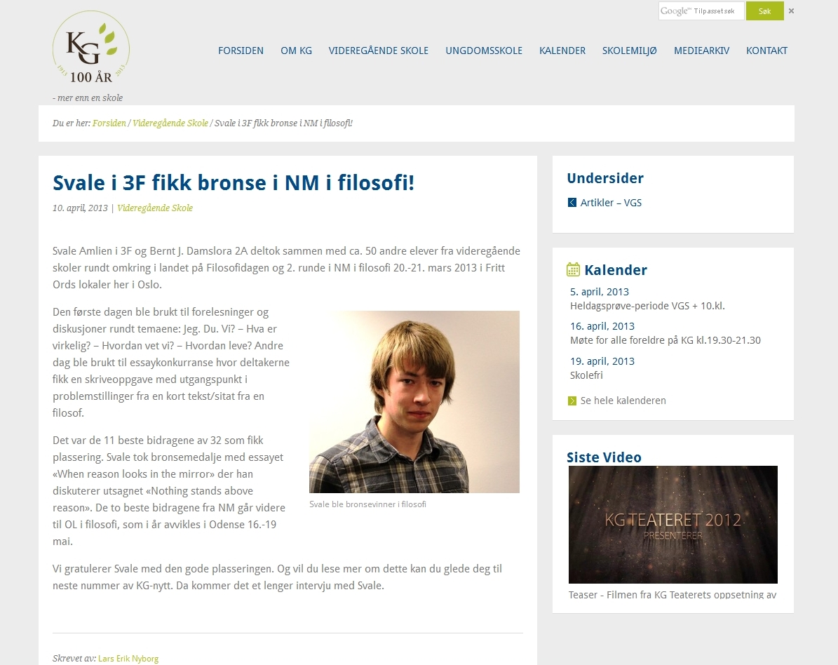 - Mediaomtale bronsevinner: kg.vgs.no (faksimile)